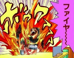 The convict catches fire.