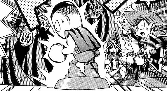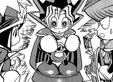 Part of episode 25: ""A New Development - Attack of the Handsome Boy"" of the Yu-Gi-Oh! first series anime is based on this chapter. Differences included:
