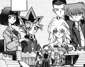 A few days later, Mr. Karita and Bakura's friends who were comatose in hospital regained consciousness. At school, Karita yells at Yugi, Jonouchi, Anzu and Honda as they arrive late and threatens detention. They wonder who he thinks got him back into his body and remark that he was not even very good as "Villager D".