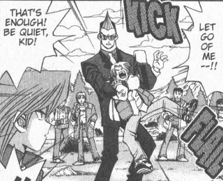 With Jonouchi on two Star Chips and Dark Yugi on five, they continue to search for more opponents. Five hours into the tournament, they see a boy being restrained by Saruwatari over, while a number of other Duelists stare in surprise. Saruwatari says that he can see the boy has lost all his Star Chips, so he has to leave the island. He argues that his Star Chips along with his cards were stolen, but Saruwatari isn't interested in how he lost them and states the rules are that you must leave the kingdom if you run out of Star Chips. Dark Yugi deduces that Saruwatari must work for Pegasus.