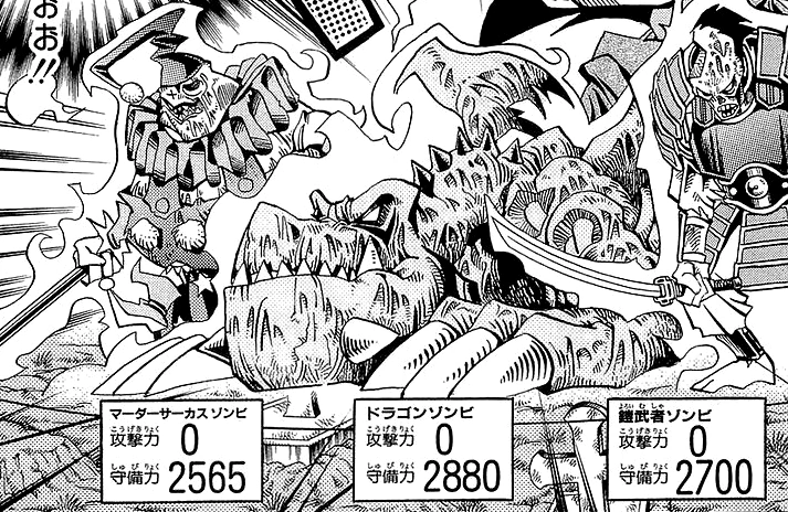 Without "Pumpking", Jonouchi points out that the Zombies cannot get any stronger. However, Kozuka says that it does not matter, since the zombies are already strong enough to defeat Jonouchi. "Dragon Zombie" attacks and destroys "Red-Eyes", leaving Jonouchi with just 150 Life Points.