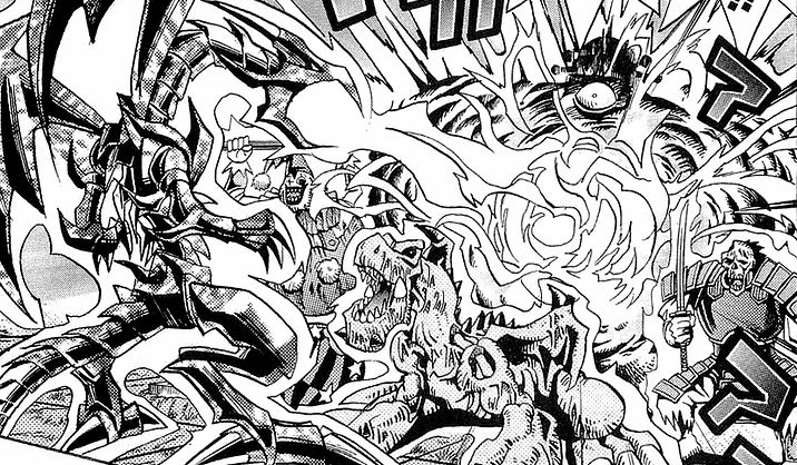 "Red-Eyes Black Dragon" destroys "Pumpking the King of Ghosts".