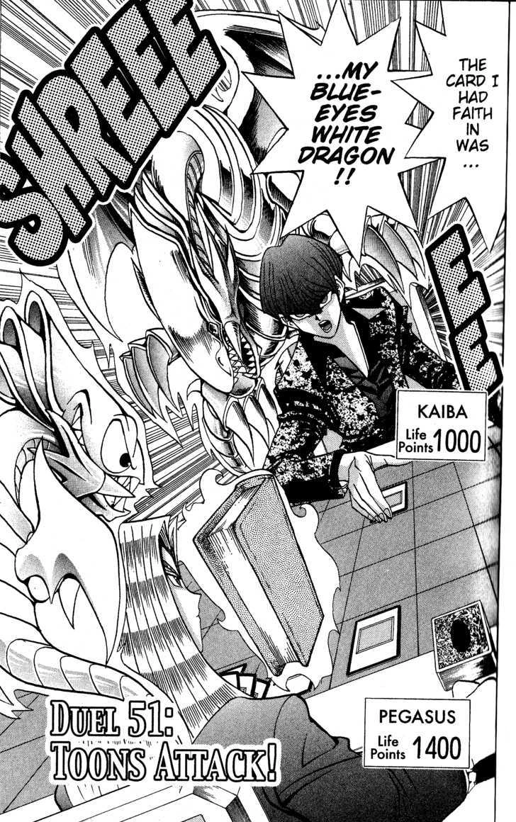"Toons Attack!" is the fifty-first chapter of Yu-Gi-Oh! Duelist in the English version and the one-hundred-tenth chapter of Yu-Gi-Oh! in the Japanese version.