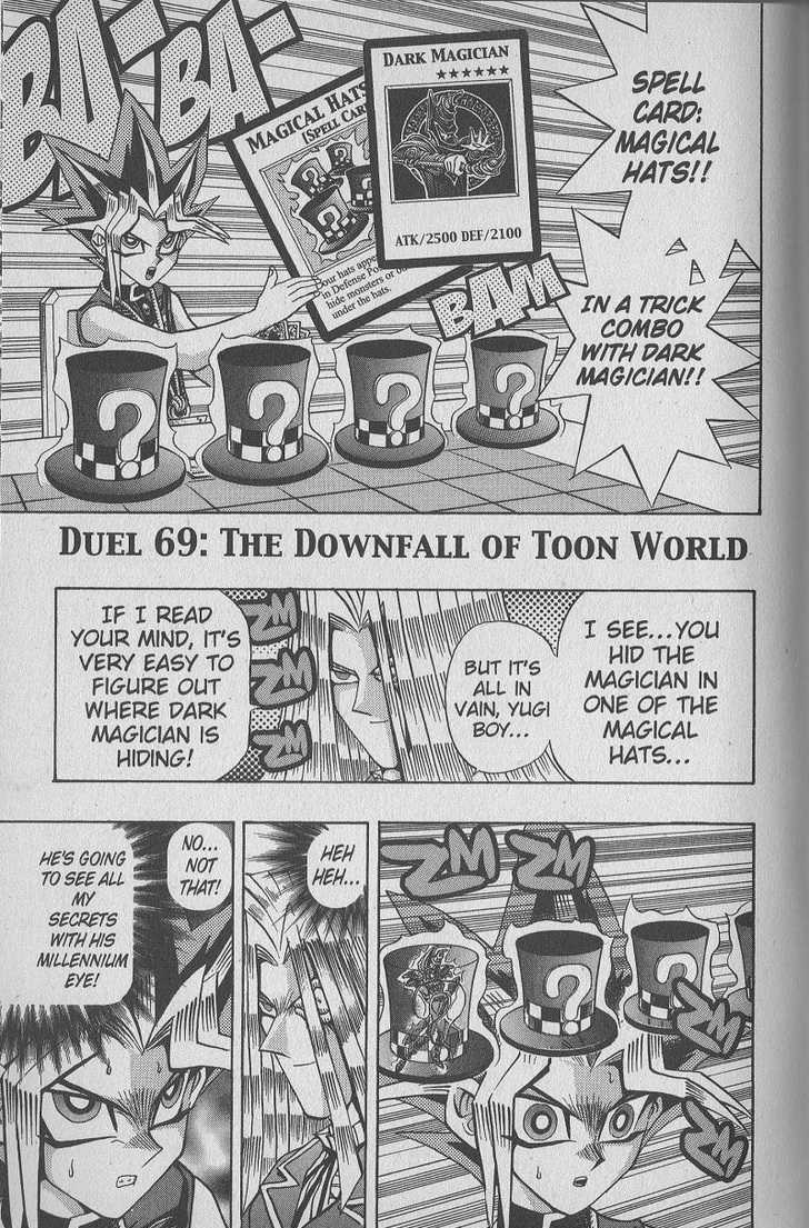 "The Downfall of Toon World", known as "The Capture of Toon World!!" in the Japanese version, is the sixty-ninth chapter of Yu-Gi-Oh! Duelist in the English version and the one hundred and twenty-eighth chapter of Yu-Gi-Oh! in the Japanese version.