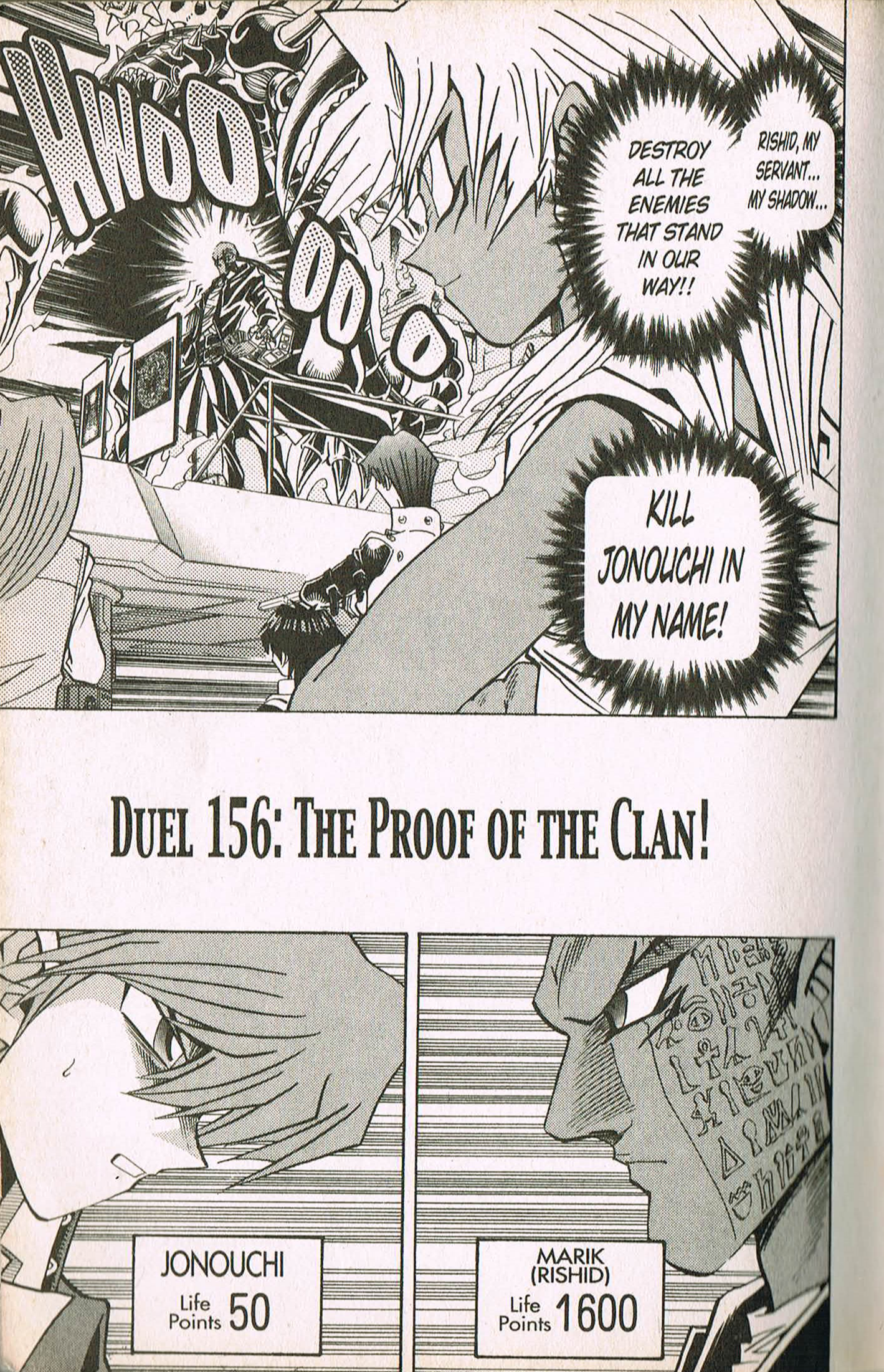 The Proof of the Clan!, also known as "Witness of the Clan!!" in the Japanese version, is the 156th chapter of the Yu-Gi-Oh! Duelist manga and the 215th chapter of Yu-Gi-Oh! in the Japanese version.