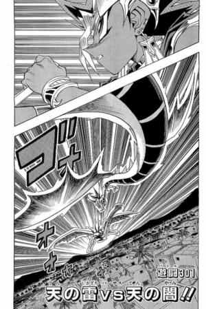 Divine Light, Divine Shadow, known as God of Thunder vs. God of Darkness in the Japanese version, is the 23rd chapter of Yu-Gi-Oh! Millennium World in the English version and the 301st chapter of Yu-Gi-Oh! in the Japanese version.