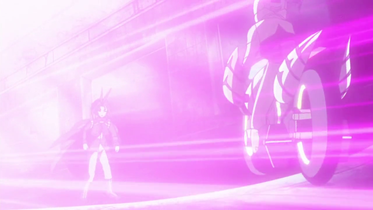 After the invasion, Yuri went to the Synchro Dimension on Leo's order to kidnap Rin. He succeeded in tracking her down and securing her in the Commons slums just as Yugo arrived on the scene and escaped using "Violet Flash". He was then seen at Heartland, secretly watching the confrontation between Yugo and Yuto from behind a building.[18]